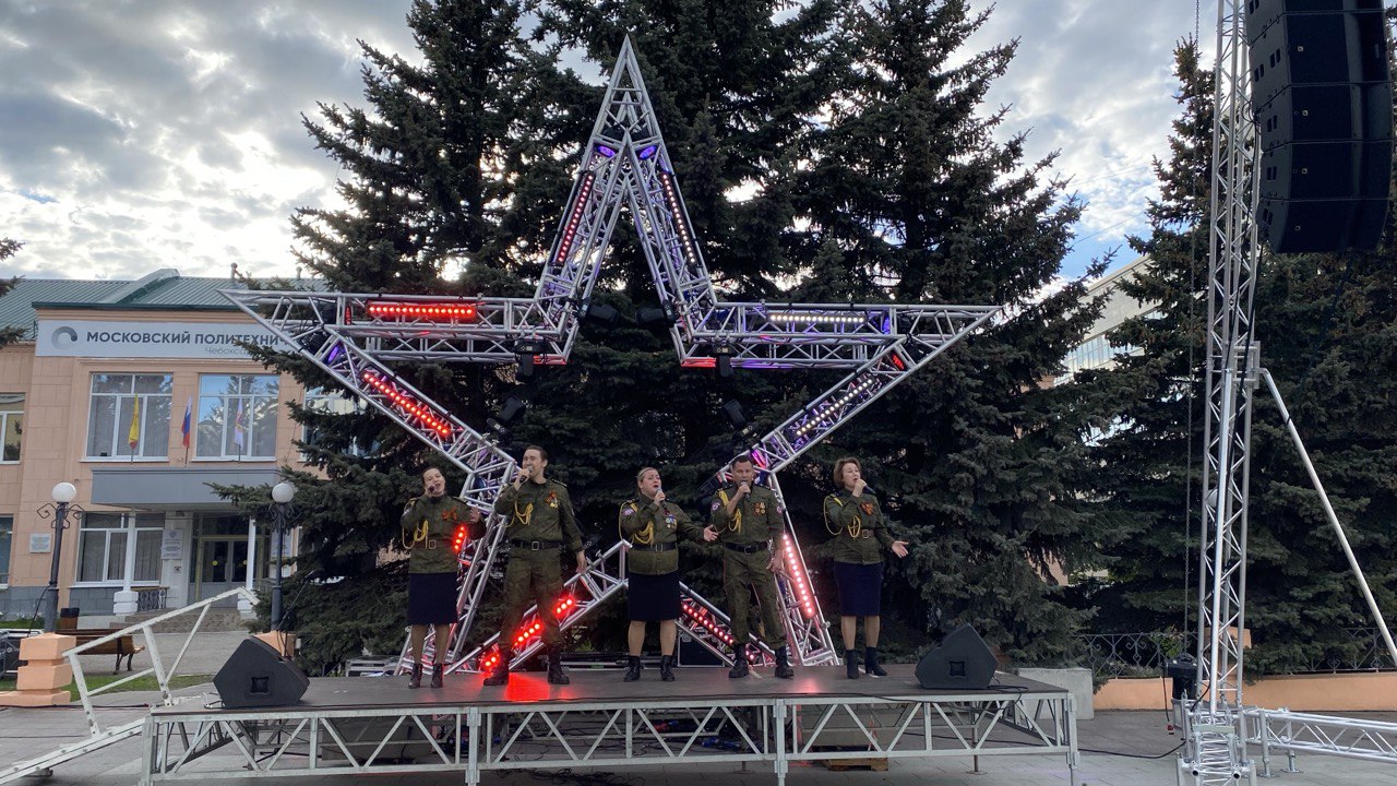 Сегодня Ансамбль патриотической песни «Живи и Помни» почти три с половиной часа поднимал настроение горожанам на концертной площадке у Стеллы трудовой доблести.