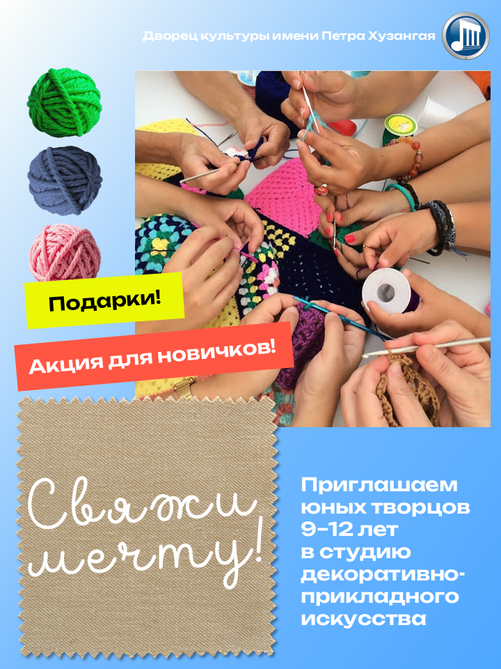Приглашаем юных творцов 9–12 лет в студию декоративно-прикладного искусства «Свяжи мечту!»